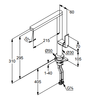 Смеситель для кухни, Kludi, QORD, тип открывания воды-однорычажный, тип регулирования воды-керамический картридж, монтаж-на раковину/столешницу, отверстия для монтажа-1, высота, мм-310, вынос излива, мм-215, тип излива-поворотный, тип подводки-гибкая, стандарт подвода воды-3/8", крепления-в комплекте, цвет-никель брашированный Смеситель для кухни, Kludi, QORD, цвет-никель брашированный