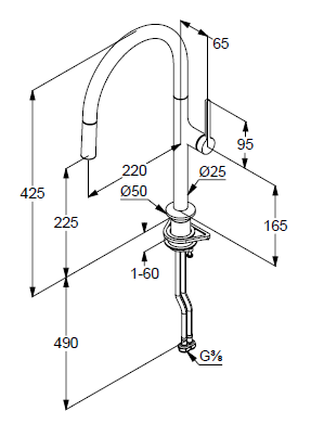 Смеситель для кухни, Kludi, REEF, тип открывания воды-однорычажный, тип регулирования воды-керамический картридж, монтаж-на раковину/столешницу, отверстия для монтажа-1, высота, мм-425, вынос излива, мм-220, тип излива-выдвижной, поворотный, тип подводки-гибкая, стандарт подвода воды-3/8", цвет-глубокий черный матовый Смеситель для кухни, Kludi, REEF, цвет-глубокий черный матовый