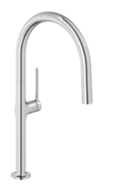Смеситель для кухни, Kludi, REEF, тип открывания воды-однорычажный, тип регулирования воды-керамический картридж, монтаж-на раковину/столешницу, отверстия для монтажа-1, высота, мм-425, вынос излива, мм-220, тип излива-выдвижной, поворотный, тип подводки-гибкая, стандарт подвода воды-3/8", цвет-хром Смеситель для кухни, Kludi, REEF, цвет-хром
