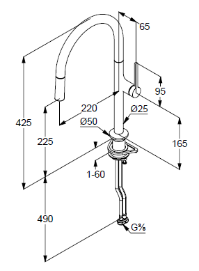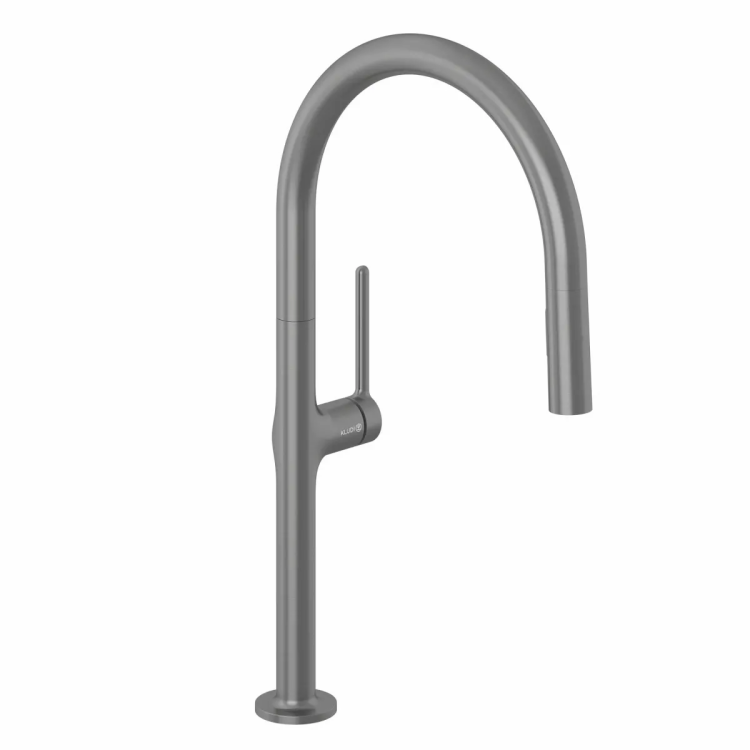 Смеситель для кухни, Kludi, REEF, тип открывания воды-однорычажный, тип регулирования воды-керамический картридж, монтаж-на раковину/столешницу, отверстия для монтажа-1, высота, мм-425, вынос излива, мм-220, тип излива-выдвижной, поворотный, тип подводки-гибкая, стандарт подвода воды-3/8", цвет-оружейная сталь брашированная Смеситель для кухни, Kludi, REEF, цвет-оружейная сталь брашированная