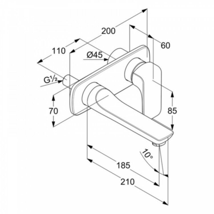 Смеситель для раковины, Kludi, Ameo, тип открывания воды-однорычажный, тип регулирования воды-керамический картридж, монтаж-настенный встраиваемый, отверстия для монтажа-2, вынос излива, мм-185, тип излива-неподвижный, донный клапан-отсутствует, стандарт подвода воды-1/2", внутренняя часть-необходимо заказать, цвет-хром Смеситель для раковины, Kludi, Ameo, цвет-хром