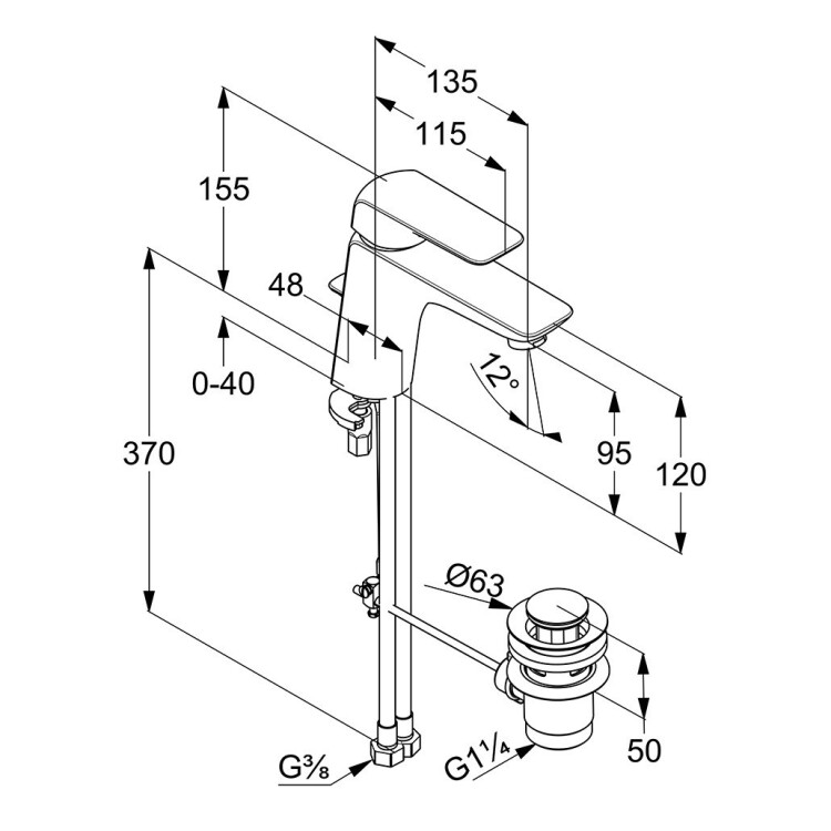 Смеситель для раковины, Kludi, Ameo, тип открывания воды-однорычажный, тип регулирования воды-керамический картридж, монтаж-на раковину/столешницу, отверстия для монтажа-1, высота, мм-155, вынос излива, мм-135, донный клапан-есть, тип подводки-гибкая, стандарт подвода воды-3/8", цвет-хром Смеситель для раковины, Kludi, Ameo, цвет-хром