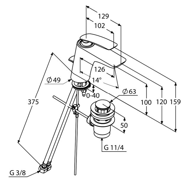 Смеситель для раковины, Kludi, Balance, тип открывания воды-однорычажный, тип регулирования воды-керамический картридж, монтаж-на раковину/столешницу, отверстия для монтажа-1, высота, мм-159, вынос излива, мм-129, донный клапан-есть, тип подводки-гибкая, стандарт подвода воды-3/8", цвет-хром Смеситель для раковины, Kludi, Balance, цвет-хром