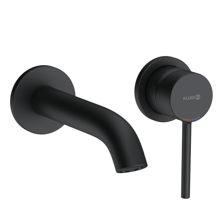 Смеситель для раковины, Kludi, BOZZ, тип открывания воды-однорычажный, тип регулирования воды-керамический картридж, монтаж-настенный встраиваемый, отверстия для монтажа-2, вынос излива, мм-180, тип излива-неподвижный, донный клапан-отсутствует, стандарт подвода воды-1/2", внутренняя часть-необходимо заказать, цвет-чёрный матовый Смеситель для раковины, Kludi, BOZZ, цвет-чёрный матовый