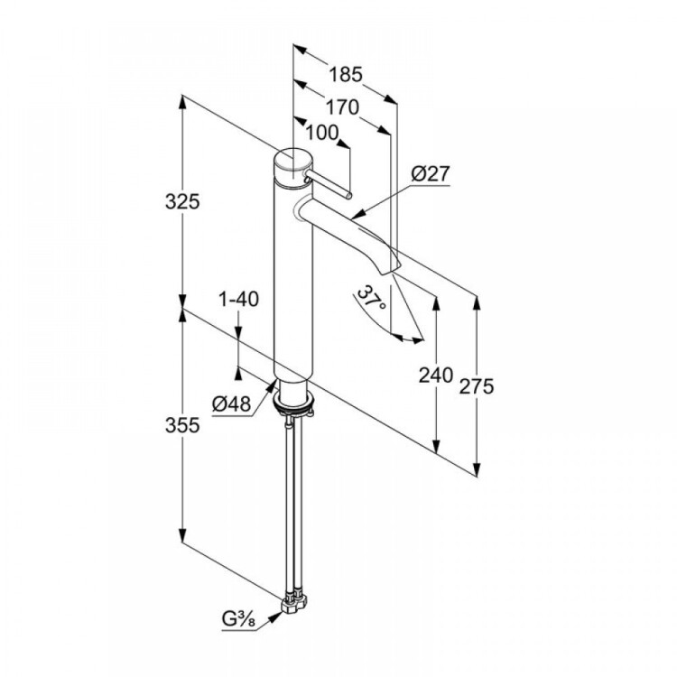 Смеситель для раковины, Kludi, BOZZ, тип открывания воды-однорычажный, тип регулирования воды-керамический картридж, монтаж-на раковину/столешницу, отверстия для монтажа-1, высота, мм-325, вынос излива, мм-170, донный клапан-отсутствует, тип подводки-гибкая, стандарт подвода воды-3/8", цвет-хром Смеситель для раковины, Kludi, BOZZ, цвет-хром
