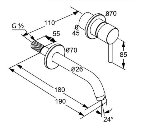 Смеситель для раковины, Kludi, BOZZ, тип открывания воды-однорычажный, тип регулирования воды-керамический картридж, монтаж-настенный встраиваемый, отверстия для монтажа-2, вынос излива, мм-180, тип излива-неподвижный, донный клапан-отсутствует, стандарт подвода воды-1/2", внутренняя часть-необходимо заказать, цвет-хром Смеситель для раковины, Kludi, BOZZ, цвет-хром
