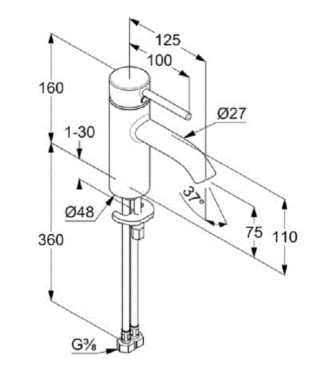 Смеситель для раковины, Kludi, BOZZ, тип открывания воды-однорычажный, тип регулирования воды-керамический картридж, монтаж-на раковину/столешницу, отверстия для монтажа-1, высота, мм-160, вынос излива, мм-125, тип излива-неподвижный, донный клапан-отсутствует, тип подводки-гибкая, стандарт подвода воды-3/8", цвет-золото брашированное Смеситель для раковины, Kludi, BOZZ, цвет-золото брашированное