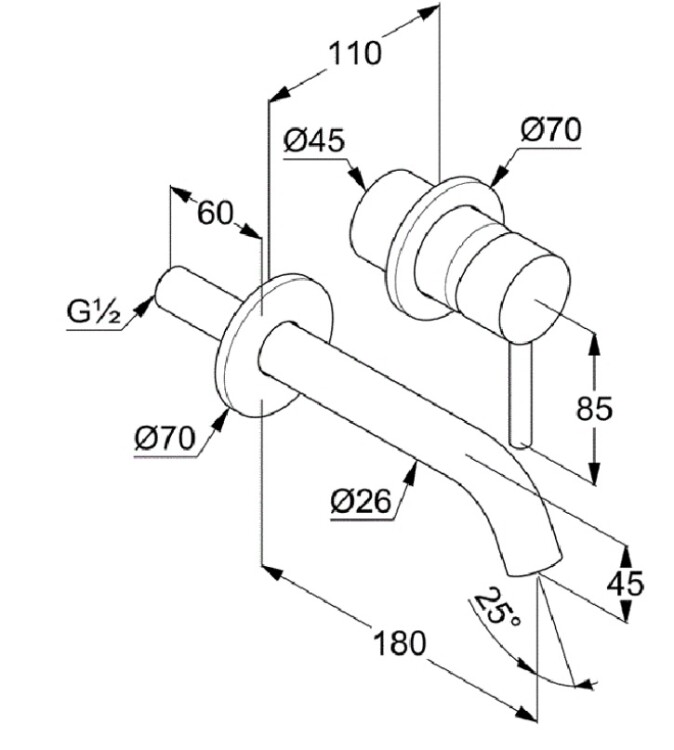 Смеситель для раковины, Kludi, BOZZ, тип открывания воды-однорычажный, тип регулирования воды-керамический картридж, монтаж-настенный встраиваемый, отверстия для монтажа-2, высота, мм-120, вынос излива, мм-180, тип излива-неподвижный, донный клапан-отсутствует, тип подводки-жесткая, стандарт подвода воды-1/2", внутренняя часть-необходимо заказать, цвет-золото брашированное Смеситель для раковины, Kludi, BOZZ, цвет-золото брашированное