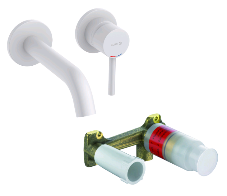 Смеситель для раковины, Kludi, BOZZ SET, тип открывания воды-однорычажный, тип регулирования воды-керамический картридж, монтаж-настенный встраиваемый, отверстия для монтажа-2, высота, мм-120, вынос излива, мм-180, тип излива-неподвижный, донный клапан-отсутствует, тип подводки-жесткая, стандарт подвода воды-1/2", внутренняя часть-в комплекте (38243), цвет-белый матовый (Matt White, Bianco Opaco) Смеситель для раковины, Kludi, BOZZ SET, цвет-белый матовый (Matt White, Bianco Opaco)