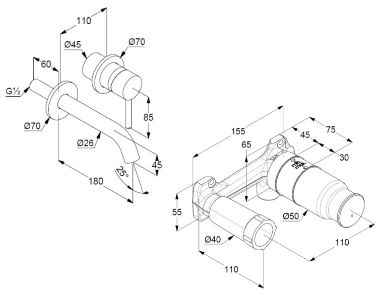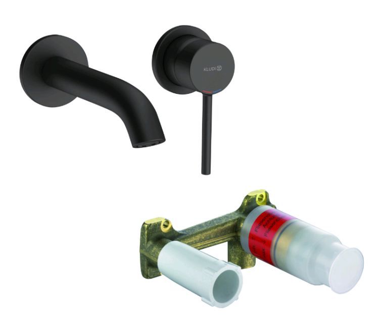 Смеситель для раковины, Kludi, BOZZ SET, тип открывания воды-однорычажный, тип регулирования воды-керамический картридж, монтаж-настенный встраиваемый, отверстия для монтажа-2, высота, мм-103, вынос излива, мм-180, тип излива-неподвижный, донный клапан-отсутствует, тип подводки-жесткая, стандарт подвода воды-1/2", внутренняя часть-в комплекте (38243), цвет-черный матовый (Matt Black, Nero Opaco) Смеситель для раковины, Kludi, BOZZ SET, цвет-черный матовый (Matt Black, Nero Opaco)
