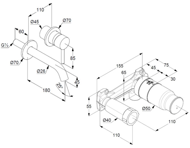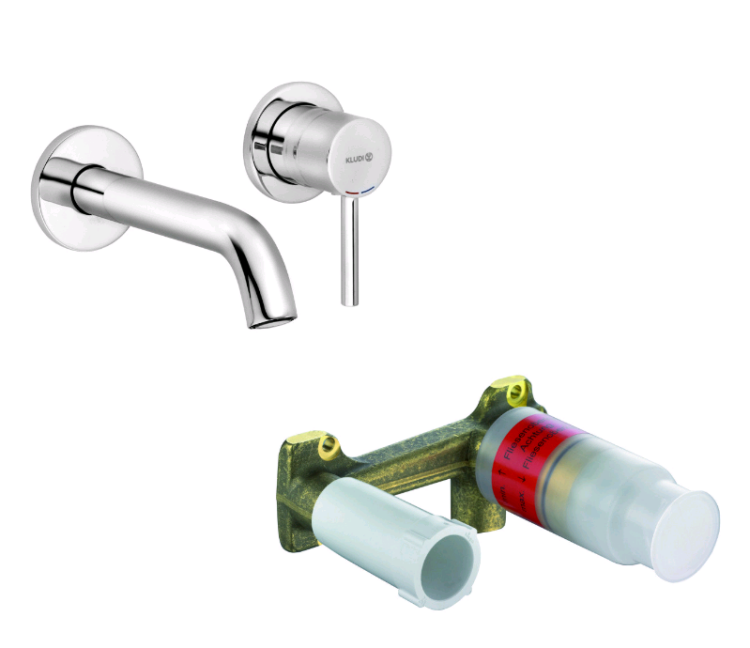 Смеситель для раковины, Kludi, BOZZ SET, тип открывания воды-однорычажный, тип регулирования воды-керамический картридж, монтаж-настенный встраиваемый, отверстия для монтажа-2, высота, мм-103, вынос излива, мм-180, тип излива-неподвижный, донный клапан-отсутствует, тип подводки-жесткая, стандарт подвода воды-1/2", внутренняя часть-в комплекте (38243), цвет-хром Смеситель для раковины, Kludi, BOZZ SET, цвет-хром