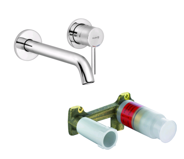 Смеситель для раковины, Kludi, BOZZ SET, тип открывания воды-однорычажный, тип регулирования воды-керамический картридж, монтаж-настенный встраиваемый, отверстия для монтажа-2, высота, мм-103, вынос излива, мм-230, тип излива-неподвижный, донный клапан-отсутствует, тип подводки-жесткая, стандарт подвода воды-1/2", внутренняя часть-в комплекте (38243), цвет-хром Смеситель для раковины, Kludi, BOZZ SET, цвет-хром