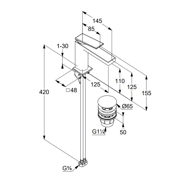 Смеситель для раковины, Kludi, DECUS, тип открывания воды-однорычажный, тип регулирования воды-керамический картридж, монтаж-на раковину/столешницу, отверстия для монтажа-1, высота, мм-155, вынос излива, мм-145, высота излива, мм-110, тип излива-неподвижный, донный клапан-есть, тип подводки-гибкая, стандарт подвода воды-3/8", цвет-Brushed Gold Смеситель для раковины, Kludi, DECUS, цвет-Brushed Gold