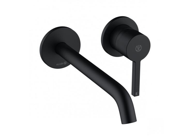 Смеситель для раковины, Kludi, Nova Fonte Pura, тип открывания воды-однорычажный, тип регулирования воды-керамический картридж, монтаж-настенный встраиваемый, отверстия для монтажа-2, вынос излива, мм-220, тип излива-неподвижный, донный клапан-отсутствует, стандарт подвода воды-1/2", внутренняя часть-необходимо заказать, цвет-черный матовый Смеситель для раковины, Kludi, Nova Fonte Pura, цвет-черный матовый