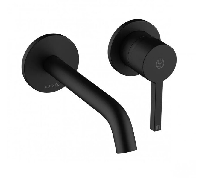 Смеситель для раковины, Kludi, Nova Fonte Pura, тип открывания воды-однорычажный, тип регулирования воды-керамический картридж, монтаж-настенный встраиваемый, отверстия для монтажа-2, вынос излива, мм-180, тип излива-неподвижный, донный клапан-отсутствует, стандарт подвода воды-1/2", внутренняя часть-необходимо заказать, цвет-черный матовый Смеситель для раковины, Kludi, Nova Fonte Pura, цвет-черный матовый