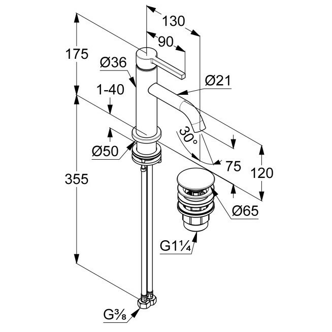 Смеситель для раковины, Kludi, Nova Fonte Pura, тип открывания воды-однорычажный, литой рычаг, тип регулирования воды-керамический картридж, монтаж-на раковину/столешницу, отверстия для монтажа-1, высота, мм-175, вынос излива, мм-130, тип излива-неподвижный, аэратор s-pointer Caché M 18,5 x 1, донный клапан-есть PUSH-OPEN, тип подводки-гибкая, стандарт подвода воды-3/8", цвет-чёрный матовый Смеситель для раковины, Kludi, Nova Fonte Pura, цвет-чёрный матовый