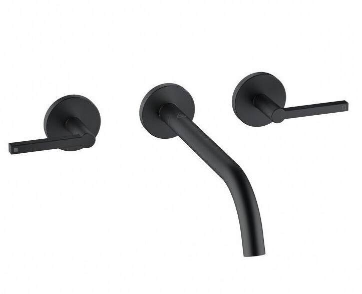 Смеситель для раковины, Kludi, Nova Fonte Puristic, тип открывания воды-двухвентильный, тип регулирования воды-керамическая кран-букса, монтаж-настенный встраиваемый, отверстия для монтажа-3, вынос излива, мм-240, тип излива-неподвижный, стандарт подвода воды-1/2", внутренняя часть-в комплекте, цвет-черный матовый Смеситель для раковины, Kludi, Nova Fonte Puristic, цвет-черный матовый