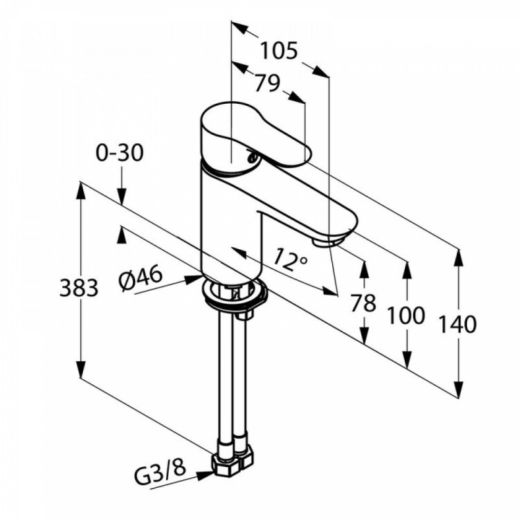 Смеситель для раковины, Kludi, OBJEKTA, тип открывания воды-однорычажный, тип регулирования воды-керамический картридж, монтаж-на раковину/столешницу, отверстия для монтажа-1, высота, мм-140, вынос излива, мм-105, донный клапан-отсутствует, тип подводки-гибкая, стандарт подвода воды-3/8", цвет-хром Смеситель для раковины, Kludi, OBJEKTA, цвет-хром
