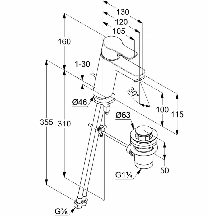Смеситель для раковины, Kludi, Pure&Easy, тип открывания воды-однорычажный, тип регулирования воды-керамический картридж, монтаж-на раковину/столешницу, отверстия для монтажа-1, высота, мм-160, вынос излива, мм-120, тип излива-неподвижный, донный клапан-есть, тип подводки-гибкая, стандарт подвода воды-3/8", цвет-хром Смеситель для раковины, Kludi, Pure&Easy, цвет-хром