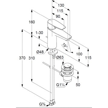 Смеситель для раковины, Kludi, Pure&Solid, тип открывания воды-однорычажный, тип регулирования воды-керамический картридж, монтаж-на раковину/столешницу, отверстия для монтажа-1, высота, мм-160, вынос излива, мм-115, донный клапан-есть, тип подводки-гибкая, стандарт подвода воды-3/8", цвет-хром Смеситель для раковины, Kludi, Pure&Solid, цвет-хром