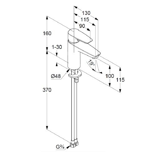 Смеситель для раковины, Kludi, Pure&Solid, тип открывания воды-однорычажный, тип регулирования воды-керамический картридж, монтаж-на раковину/столешницу, отверстия для монтажа-1, высота, мм-160, вынос излива, мм-115, донный клапан-отсутствует, тип подводки-гибкая, стандарт подвода воды-3/8", цвет-хром Смеситель для раковины, Kludi, Pure&Solid, цвет-хром