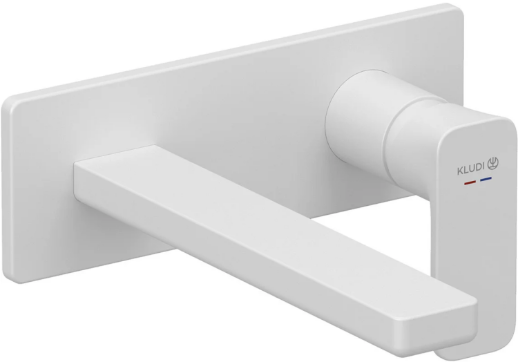 Смеситель для раковины, Kludi, Renon, тип открывания воды-однорычажный, тип регулирования воды-керамический картридж, монтаж-настенный встраиваемый, отверстия для монтажа-2, высота, мм-70, вынос излива, мм-190, тип излива-неподвижный, донный клапан-отсутствует, тип подводки-жесткая, стандарт подвода воды-1/2", внутренняя часть-необходимо заказать, цвет-белый матовый Смеситель для раковины, Kludi, Renon, цвет-белый матовый