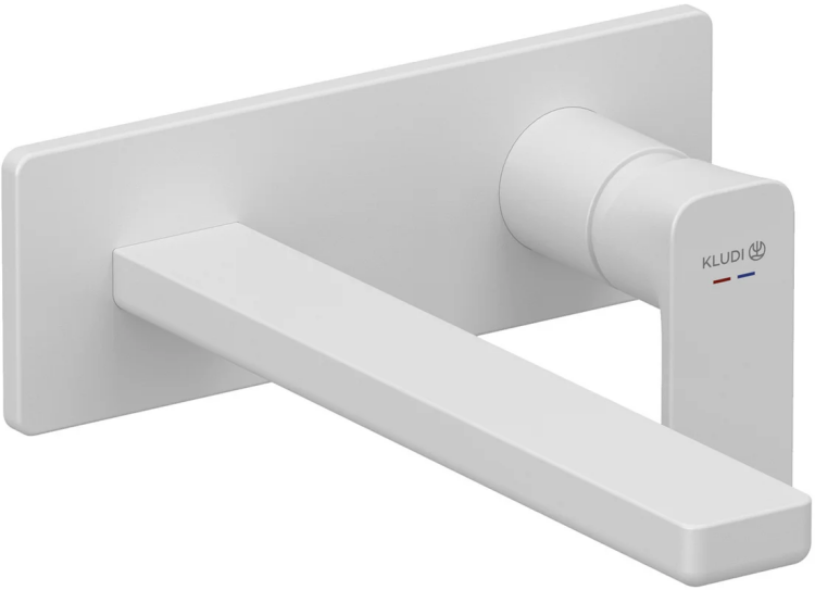 Смеситель для раковины, Kludi, Renon, тип открывания воды-однорычажный, тип регулирования воды-керамический картридж, монтаж-настенный встраиваемый, отверстия для монтажа-2, высота, мм-70, вынос излива, мм-220, тип излива-неподвижный, донный клапан-отсутствует, тип подводки-жесткая, стандарт подвода воды-1/2", внутренняя часть-необходимо заказать, цвет-белый матовый Смеситель для раковины, Kludi, Renon, цвет-белый матовый