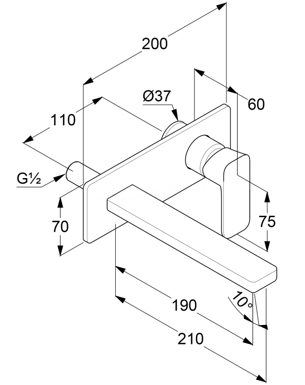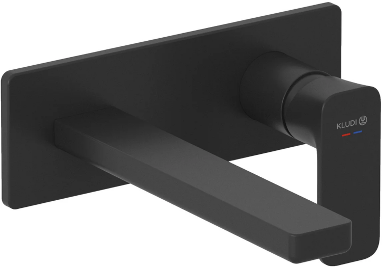 Смеситель для раковины, Kludi, Renon, тип открывания воды-однорычажный, тип регулирования воды-керамический картридж, монтаж-настенный встраиваемый, отверстия для монтажа-2, высота, мм-70, вынос излива, мм-190, тип излива-неподвижный, донный клапан-отсутствует, тип подводки-жесткая, стандарт подвода воды-1/2", внутренняя часть-необходимо заказать, цвет-черный матовый Смеситель для раковины, Kludi, Renon, цвет-черный матовый