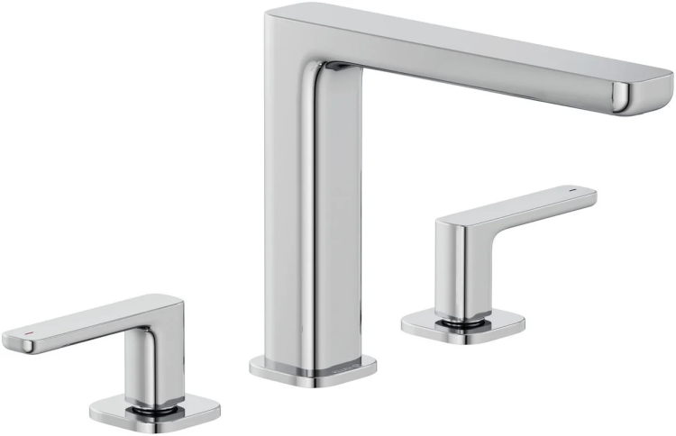 Смеситель для раковины, Kludi, Renon, тип открывания воды-вентильный, тип регулирования воды-керамическая кран-букса, монтаж-на раковину/столешницу, отверстия для монтажа-3, высота, мм-165, вынос излива, мм-180, тип излива-неподвижный, донный клапан-есть, Push-open, тип подводки-гибкая, стандарт подвода воды-3/8", цвет-хром Смеситель для раковины, Kludi, Renon, цвет-хром