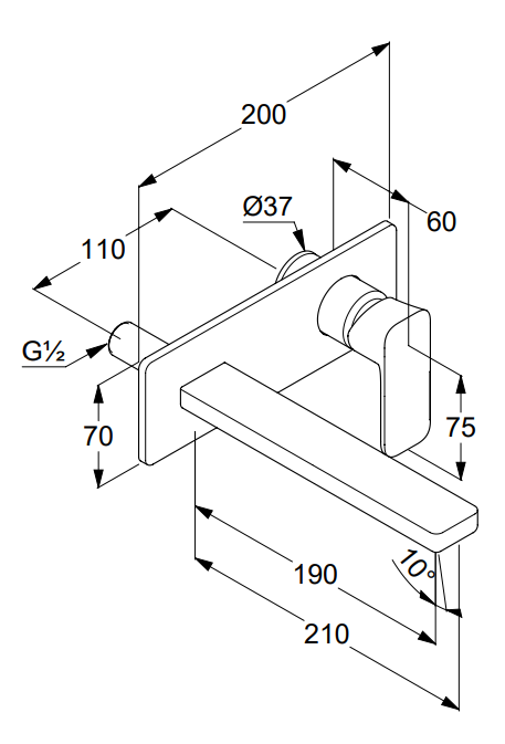 Смеситель для раковины, Kludi, Renon, тип открывания воды-однорычажный, тип регулирования воды-керамический картридж, монтаж-настенный встраиваемый, отверстия для монтажа-2, высота, мм-70, вынос излива, мм-190, тип излива-неподвижный, донный клапан-отсутствует, тип подводки-жесткая, стандарт подвода воды-1/2", внутренняя часть-необходимо заказать, цвет-золото брашированное Смеситель для раковины, Kludi, Renon, цвет-золото брашированное