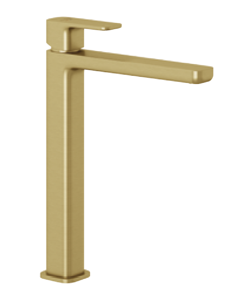 Смеситель для раковины, Kludi, Renon, тип открывания воды-однорычажный, тип регулирования воды-керамический картридж, монтаж-на раковину/столешницу, отверстия для монтажа-1, высота, мм-290, вынос излива, мм-180, донный клапан-отсутствует, тип подводки-гибкая, стандарт подвода воды-3/8", цвет-золото брашированное Смеситель для раковины, Kludi, Renon, цвет-золото брашированное