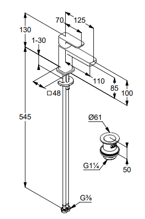 Смеситель для раковины, Kludi, Renon, тип открывания воды-однорычажный, тип регулирования воды-керамический картридж, монтаж-на раковину/столешницу, отверстия для монтажа-1, высота, мм-125, вынос излива, мм-110, донный клапан-есть, Push-open, тип подводки-гибкая, стандарт подвода воды-3/8", цвет-золото брашированное Смеситель для раковины, Kludi, Renon, цвет-золото брашированное