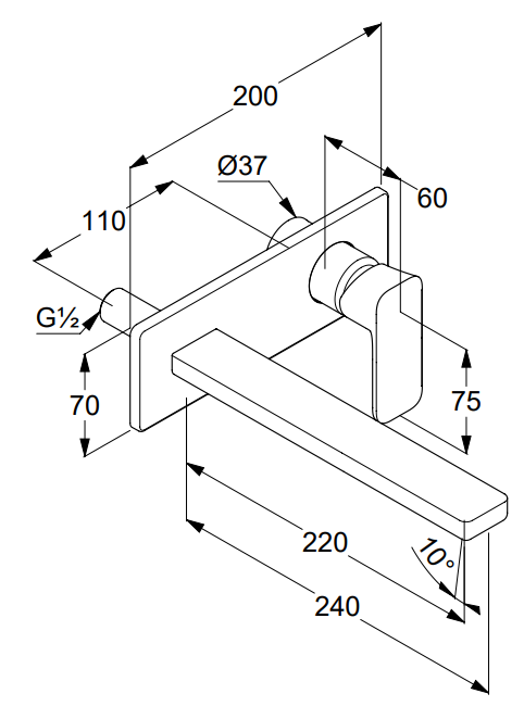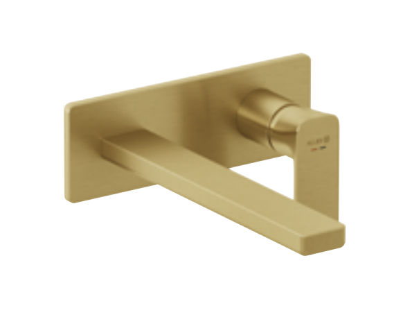 Смеситель для раковины, Kludi, Renon, тип открывания воды-однорычажный, тип регулирования воды-керамический картридж, монтаж-настенный встраиваемый, отверстия для монтажа-2, высота, мм-70, вынос излива, мм-220, тип излива-неподвижный, донный клапан-отсутствует, тип подводки-жесткая, стандарт подвода воды-1/2", внутренняя часть-необходимо заказать, цвет-золото брашированное Смеситель для раковины, Kludi, Renon, цвет-золото брашированное