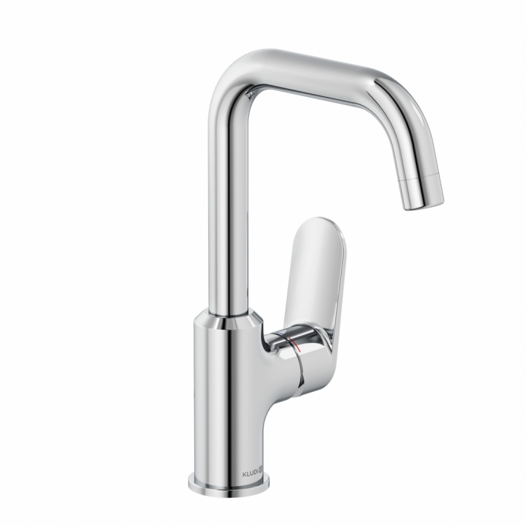 Смеситель для раковины, Kludi, X1, тип открывания воды-однорычажный, управление сбоку, тип регулирования воды-керамический картридж, монтаж-на раковину/столешницу, отверстия для монтажа-1, высота, мм-275, вынос излива, мм-155, донный клапан-есть, тип подводки-гибкая, стандарт подвода воды-3/8", цвет-хром Смеситель для раковины, Kludi, X1, цвет-хром