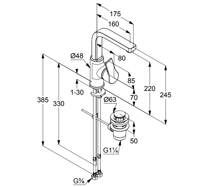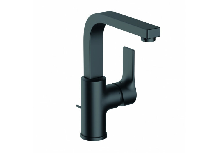 Смеситель для раковины, Kludi, ZENTA SL, тип открывания воды-однорычажный, тип регулирования воды-керамический картридж, монтаж-на раковину/столешницу, отверстия для монтажа-1, высота, мм-245, вынос излива, мм-160, тип излива-поворотный (360°), донный клапан-есть, тип подводки-гибкая, стандарт подвода воды-3/8", цвет-черный матовый Смеситель для раковины, Kludi, ZENTA SL, цвет-черный матовый
