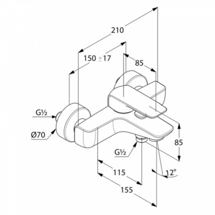 Смеситель для ванны и душа, Kludi, Ameo, тип открывания воды-однорычажный, тип регулирования воды-керамический картридж, монтаж-настенный, отверстия для монтажа-2, вынос излива, мм-160, автоматический переключатель душ/ванна, отвод для душа G 1/2, цвет-хром Смеситель для ванны и душа, Kludi, Ameo, цвет-хром
