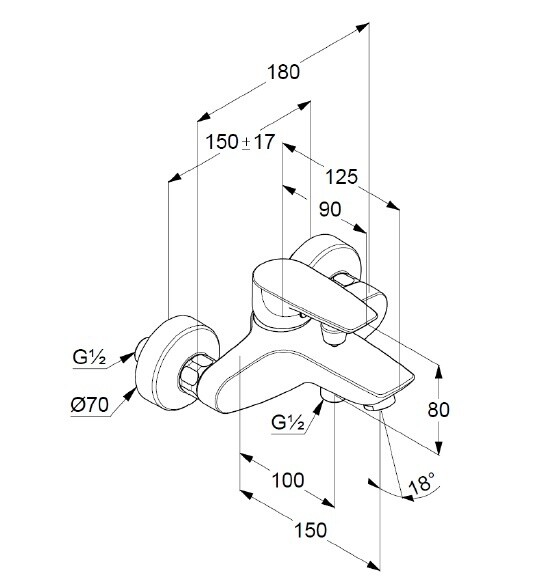 Смеситель для ванны и душа, Kludi, Pure&Solid, тип открывания воды-однорычажный, тип регулирования воды-керамический картридж, монтаж-настенный, отверстия для монтажа-2, вынос излива, мм-150, автоматическое переключение душ/ванна, отвод для душа G 1/2, цвет-хром Смеситель для ванны и душа, Kludi, Pure&Solid, цвет-хром