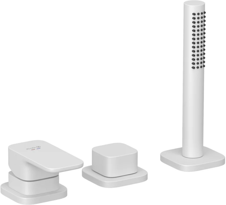 Смеситель для ванны и душа, Kludi, Renon, тип открывания воды-однорычажный, тип регулирования воды-керамический картридж, монтаж-на борт ванны, отверстия для монтажа-3, ручной душ-в комплекте, цвет-белый матовый Смеситель для ванны и душа, Kludi, Renon, цвет-белый матовый