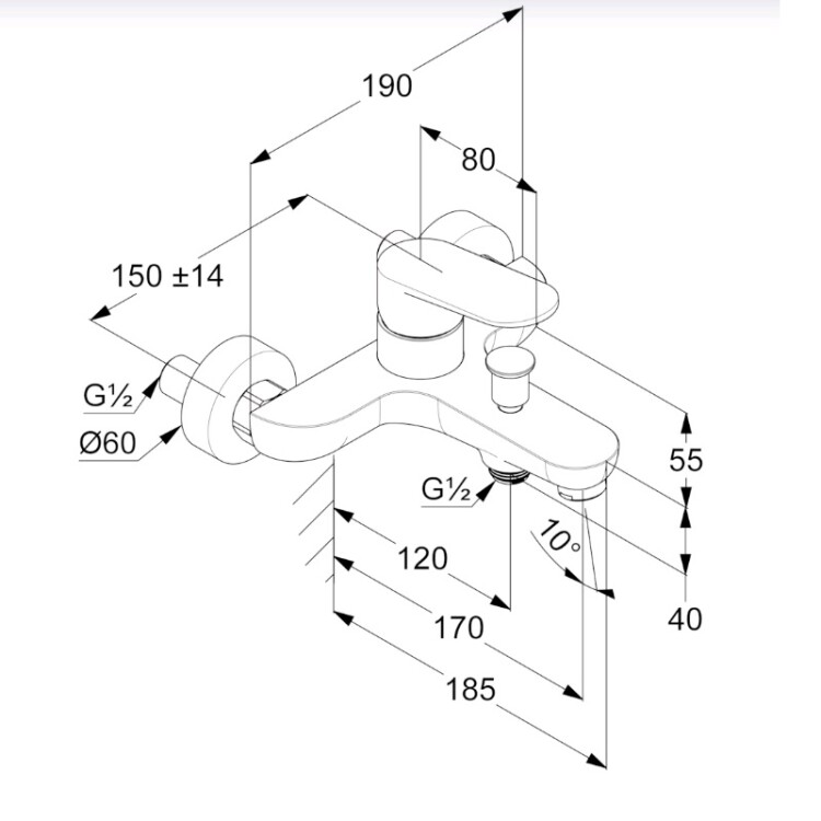 Смеситель для ванны и душа, Kludi, X1, с переключателем ванна/душ, тип открывания воды-однорычажный, тип регулирования воды-керамический картридж, монтаж-настенный, отверстия для монтажа-2, вынос излива, мм-170, тип излива-неподвижный, цвет-хром Смеситель для ванны и душа, Kludi, X1, цвет-хром