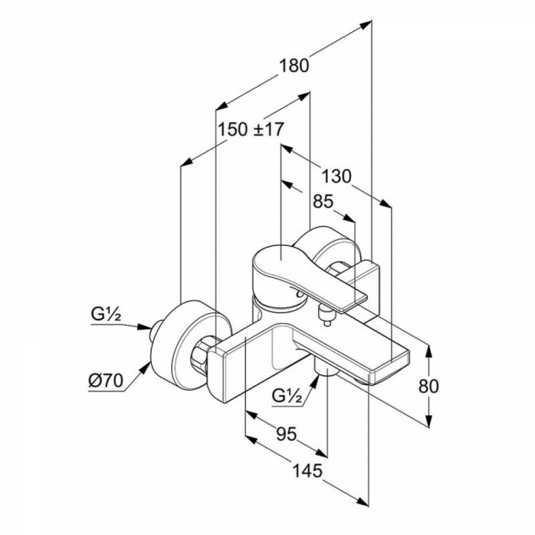 Смеситель для ванны и душа, Kludi, ZENTA SL, тип открывания воды-однорычажный, тип регулирования воды-керамический картридж, монтаж-настенный, отверстия для монтажа-2, вынос излива, мм-145, автоматический переключатель душ/ванна, цвет-хром Смеситель для ванны и душа, Kludi, ZENTA SL, цвет-хром