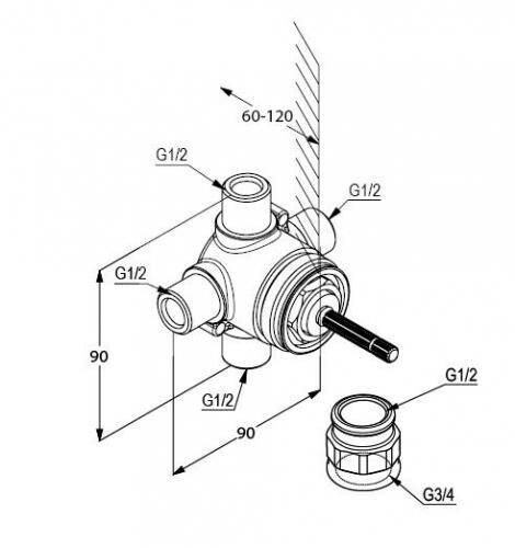 Внутренняя часть, Kludi, Ambienta, для переключателя на 3 положения, DN 15, 1 подводка G 1/2, 3 отвода G 1/2, муфта переходная G 1/2 х G 3/4 Внутренняя часть, Kludi, Ambienta, для переключателя на 3 положения