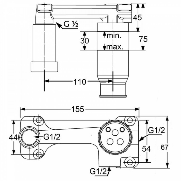 Внутренняя часть, Kludi, для настенного смесителя для раковины на 2 отверстия, резьбовое соединение G 1/2" Внутренняя часть, Kludi, для настенного смесителя для раковины на 2 отверстия