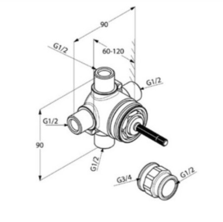 Внутренняя часть, Kludi, для переключателя на 2 положения, DN 15, 1 подводка G 3/4, 2 отвода G 1/2 Внутренняя часть, Kludi, для переключателя на 2 положения