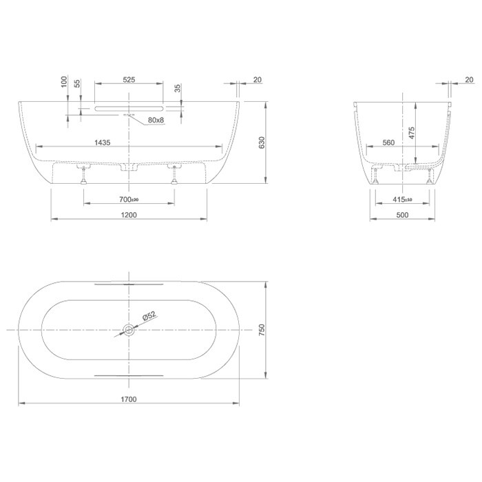Ванна, KNIEF, Lotus, ширина, мм-1700, глубина, мм-750, высота, мм-630, тип установки-отдельностоящий, форма-овальная, с щелевым сливом переливом click-clack, диаметр слива, мм-52, материал-K-Stone, цвет-белый матовый Ванна, KNIEF, Lotus, шгв 1700*750*630, цвет-белый матовый