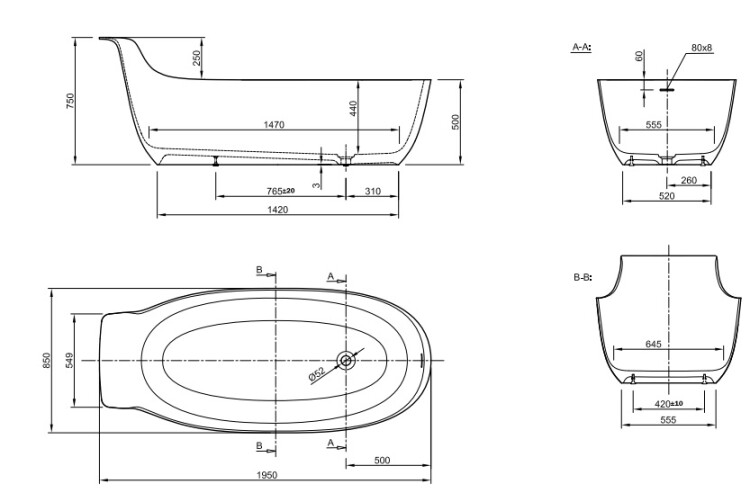 Ванна, KNIEF, Prime Oval, ширина, мм-1950, глубина, мм-850, высота, мм-750/500, тип установки-отдельностоящий, с высокой спинкой, слив-перелив-в комплекте, материал-K-Stone, цвет-белый матовый Ванна, KNIEF, Prime Oval, шгв 1950*850*750/500, цвет-белый матовый