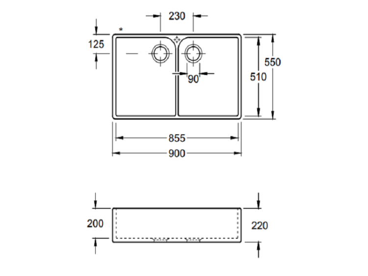 Мойка, Villeroy&Boch, Kitchen, ширина, мм-900, глубина, мм-550, высота, мм-220, отверстия для смесителя-отсутствуют, вид грязеотталкивающего покрытия-CeramicPlus, цвет-альпийский белый Мойка, Villeroy&Boch, Kitchen, шгв 900*550*220, CeramicPlus, цвет-альпийский белый