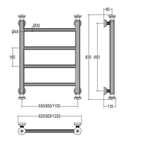 Полотенцесушитель, Margaroli, Capitelli, электрический, 2-952J, ширина, мм-625, глубина, мм-110, высота, мм-830, межосевое расстояние-550, подключение-Box справа, мощность, Вт-100, цвет-золото Полотенцесушитель, Margaroli, Capitelli, 2-952J, шгв 625*110*830, Box справа, цвет-золото
