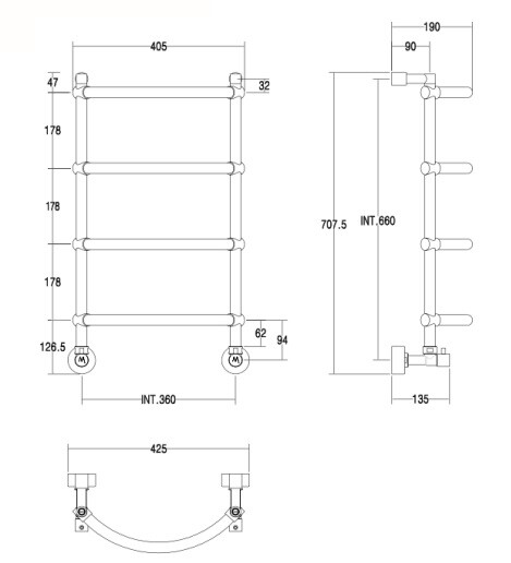 Полотенцесушитель, Margaroli, Luna, 432, водяной, ширина, мм-425, глубина, мм-190, высота, мм-707.5, межосевое расстояние-360, мощность, Вт-155, материал-латунь, назначение-ГВС, открытая/закрытая система отопления, цвет-хром Полотенцесушитель, Margaroli, Luna, 432, шгв 425*190*707.5, цвет-хром
