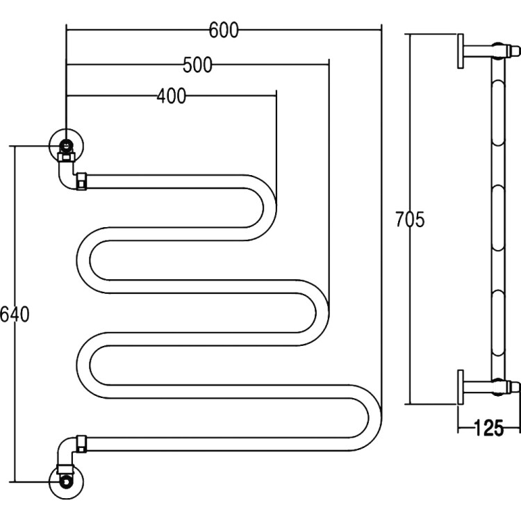 Полотенцесушитель, Margaroli, Vento, 405, водяной, поворотный, ширина, мм-600, глубина, мм-125, высота, мм-705, межосевое расстояние-640, мощность, Вт-179, материал-латунь, назначение-ГВС, открытая/закрытая система отопления, цвет-Old Brass Полотенцесушитель, Margaroli, Vento, 405, шгв 600*125*705 мм, цвет-Old Brass