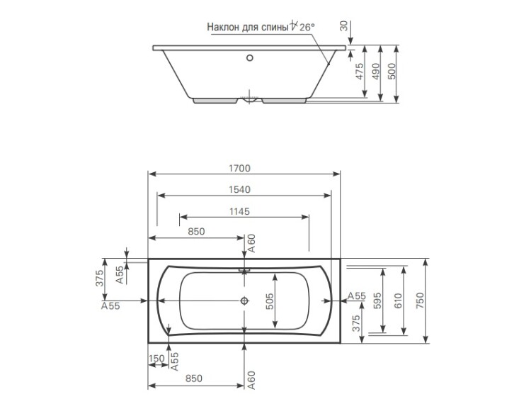 Ванна, Mauersberger, Jucunda, ширина, мм-1700, глубина, мм-750, высота, мм-475, водоизмещение (л)-160, тип установки-встраиваемый, форма-прямоугольная, слив-перелив-необходимо заказать, диаметр слива, мм-52, материал-акрил, цвет-белый матовый Ванна, Mauersberger, Jucunda, шгв 1700*750*475, цвет-белый матовый
